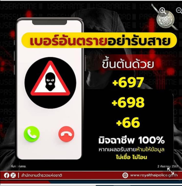 สํานักงานตํารวจแห่งชาติออกโรงเตือนภัยประชาชน หลังพบแก๊งคอลเซ็นเตอร์ เบอร์อันตราย