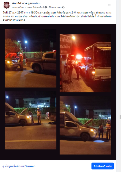 วันนี้ 27 ม.ค 2567 เวลา 19.30น.ร.ต.อ.ประนอม สีสัน ร้อยเวร 2-0 สภ.หน่อม พร้อม สายตรวจและจราจร ส...